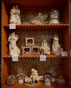 An elegant nativity scene, Santa figures of every sort, handsome nutcrackers and ornaments to make your home shine for Christmas.