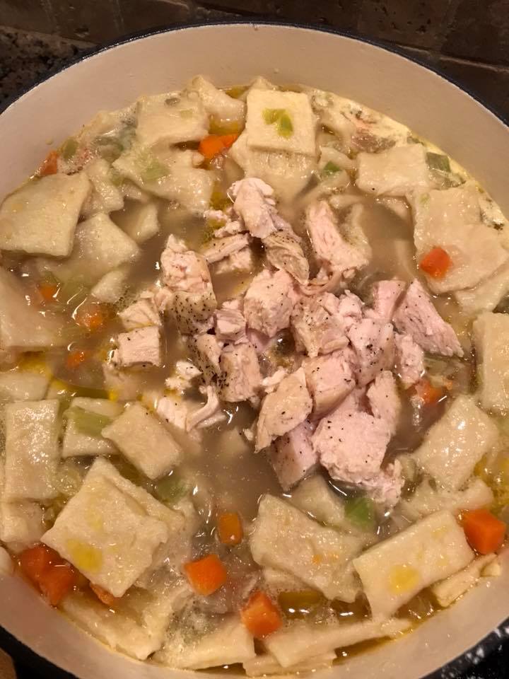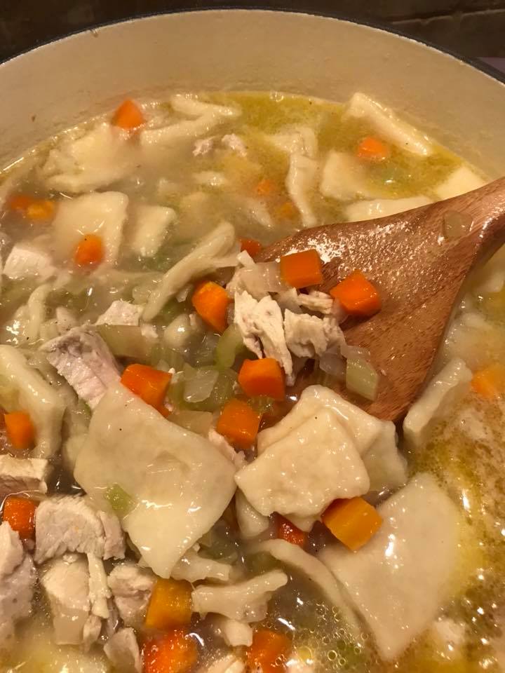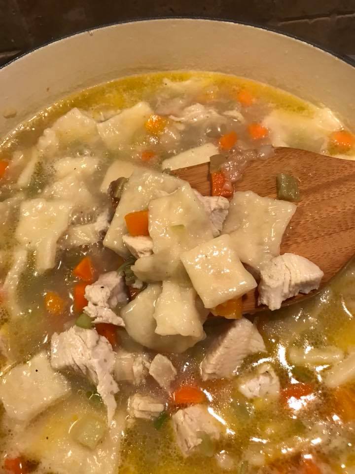 Suffice it to say, it is a Winner Winner Chicken Dinner for the whole family. We eat it any time of year, but during this cold winter, we ate it a lot. It reminds me of Chicken Noodle Soup, too, but I like it much better. Definite comfort food. It’s so good, I had to take the ‘g’ off of “dumplings” to capture it’s down home goodness.