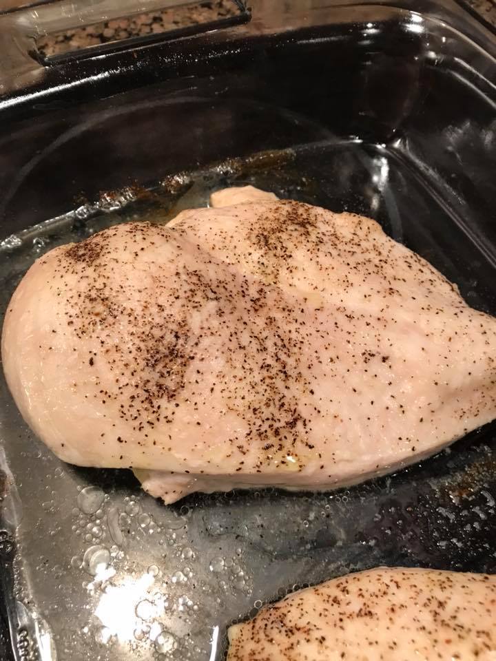 - To bake the chicken: Soak the chicken in a bowl of salt water for 15 minutes. Preheat the oven to 450°. Then, pound the chicken fairly thin. Spread butter on a 9X13 baking dish and put in the chicken. Brush the tops of the chicken with more butter and sprinkle with salt and pepper and any other seasonings of choice. Bake for 15-18 minutes. Let rest for 5 minutes covered in foil before chopping. Keep covered in foil until ready to add to the soup.